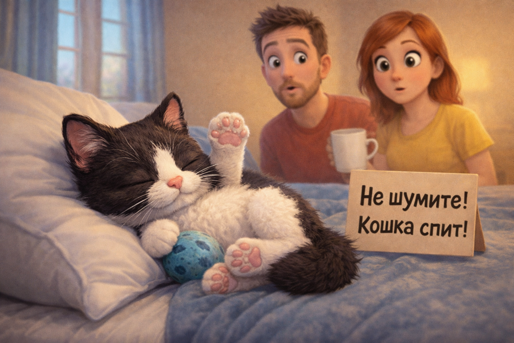 Им скажите очень строго: «Не шумите! Кошка спит!»